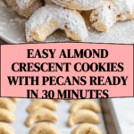 Delightful Almond Crescent Cookies combining finely ground almond flour and chopped pecans, gently baked to a light golden brown and coated with powdered sugar for a soft, buttery treat perfect for any occasion.