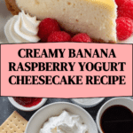 This Banana Raspberry Yogurt Cheesecake Recipe pairs wonderfully with light, refreshing accompaniments. A crisp mixed green salad with citrus vinaigrette keeps the meal balanced, while a scoop of vanilla or lemon sorbet echoes the tangy tones in the cheesecake. For a cozy indulgence, a cup of freshly brewed coffee or a fruity herbal tea complements the dessert’s flavors beautifully.