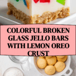 Broken Glass Jello Bars are a colorful and fun dessert featuring a crunchy lemon Oreo crust topped with vibrant, multi-flavored jello cubes suspended in a creamy gelatin and sweetened condensed milk mixture. This no-bake recipe combines bright colors and zesty flavors to create an eye-catching treat that’s perfect for parties and gatherings.