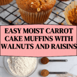 Deliciously moist Carrot Cake Muffins packed with grated carrots, crunchy walnuts, and sweet raisins. These muffins are perfectly spiced with cinnamon and allspice, making a wonderful treat for breakfast or a snack. Easy to prepare and bake, they offer a comforting flavor that everyone will love.