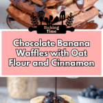 Delicious and healthy Chocolate Banana Waffles made with oat flour, ripe banana, cacao powder, and coconut oil. These waffles are naturally sweetened, gluten-free, and perfect for a nutritious breakfast or brunch option.