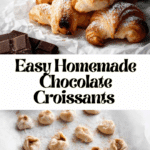 Delight in the classic French treat with this easy-to-make Chocolate Croissant recipe. Flaky puff pastry filled with rich semi-sweet chocolate, baked to golden perfection, and finished with a sweet powdered sugar dusting—perfect for breakfast or a decadent snack.