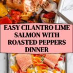 This Cilantro Lime Salmon recipe features tender salmon fillets marinated in a zesty blend of lime juice, fresh cilantro, and aromatic spices, paired with charred rainbow bell peppers and onions. Broiled to perfection, this 20-minute dish offers a fresh, vibrant flavor profile perfect for a quick and healthy dinner.