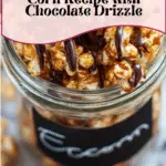 Delight in the sweet and spicy flavors of this homemade Cinnamon Roll Caramel Corn. Tender popcorn coated in a rich, buttery cinnamon caramel sauce, baked to perfection and finished with a drizzle of melted semi-sweet chocolate for an irresistible treat that’s perfect for snack time or parties.