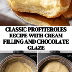 This classic profiteroles recipe features crisp choux pastry shells filled with smooth, homemade pastry cream and topped with a decadent chocolate ganache glaze. Perfectly puffed and golden, these elegant French pastries make a stunning dessert for any occasion, combining delicate textures and rich flavors for an irresistible treat.
