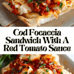 Cod Focaccia Sandwich with a Red Tomato Sauce is a flavorful, satisfying meal that brings the essence of coastal Italian cuisine into your kitchen. With flaky fish, zesty sauce, and chewy bread, it’s a gourmet sandwich that’s surprisingly easy to make and sure to impress. Whether for lunch, dinner, or casual entertaining, this dish is a delicious twist on classic comfort food.