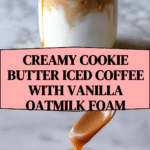Indulge in a creamy, flavorful iced coffee featuring homemade cookie butter syrup and a luscious vanilla oatmilk cold foam. This cozy drink combines warm coffee with a rich, caramel-like syrup made from cookie butter, topped with a frothy cold foam that adds a smooth texture and a hint of cinnamon, perfect for a delightful coffee break or a treat any time of day.