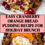 A cozy and flavorful Cranberry Orange Bread Pudding made with tender bread cubes soaked in a rich custard infused with fresh cranberries, orange zest, cinnamon, and a hint of bourbon. Perfect for a comforting dessert or brunch treat, topped with crunchy pecans and served warm.