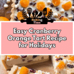 This Cranberry Orange Tart features a tender, buttery crust paired with a creamy, tangy cream cheese filling studded with dried cranberries and white chocolate chips. The fresh orange zest and segments add bright citrus notes, perfectly balancing the sweetness. A festive and elegant dessert, it’s ideal for holiday gatherings or any special occasion.