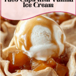 Once your tortillas are baked and the fruit filling is rich and fragrant from slow cooking, it’s time to assemble. Spoon a generous amount of the warm fruit mixture into each crispy taco cup. Add a scoop of smooth vanilla ice cream on top, letting it melt slowly into the juicy fruit. Finally, drizzle with luscious caramel syrup to finish, adding a buttery sweetness that ties all the flavors together in each bite.