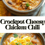 Crockpot Cheesy Chicken Chili is a creamy, hearty slow-cooker meal packed with shredded chicken, beans, corn, tomatoes, and melted cheese. It’s an easy, comforting dish perfect for busy weeknights or cozy weekends.