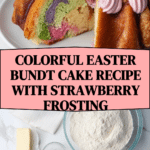This Easter Bundt Cake is a delightful springtime dessert featuring a soft, buttery marble pound cake with colorful swirls and a festive strawberry frosting. Perfect for any spring celebration, the cake combines classic flavors with a visually stunning presentation, making it an ideal centerpiece for your holiday table.