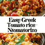 Ntomatorizo is a simple yet flavorful Greek tomato rice dish made with pantry staples like rice, tomatoes, onion, and garlic. It’s rich, comforting, and the perfect Mediterranean side or vegan main.