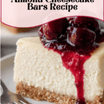 These Gluten-Free Cherry Almond Cheesecake Bars combine a buttery almond crust with a creamy, fluffy cheesecake filling, topped with a luscious cherry sauce. Perfectly balanced between sweet and tart, this dessert is baked in a water bath for a smooth texture and served chilled for the best flavor experience.