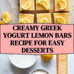 This Greek Yogurt Lemon Bars Recipe is everything you want in a citrus dessert—bright, creamy, and refreshingly light with a buttery crunch to finish. It’s ideal for sharing with friends, packing into lunches, or treating yourself on a sunny day. Give it a try, and I promise it will earn a permanent spot in your recipe collection.