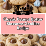 Hershey’s Peanut Butter Blossoms are classic, soft peanut butter cookies topped with a signature Hershey’s Kiss in the center. These cookies feature a tender peanut butter dough rolled in sugar, baked until slightly cracked on top, and then crowned with chocolate for a perfect sweet and salty treat.