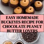 Homemade Buckeyes are a classic peanut butter and chocolate treat resembling the nut of the Ohio buckeye tree. These bite-sized confections feature a creamy peanut butter center dipped partially in rich semi-sweet chocolate, creating a perfect balance of sweet and salty flavors. Quick to prepare and no-bake, they’re a favorite candy for parties, holidays, and anytime you crave a nostalgic treat.