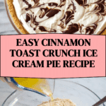 This Ice Cream Pie is a delightful no-bake dessert featuring a crunchy Cinnamon Toast Crunch cereal crust, creamy vanilla ice cream filling blended with whipped topping and cereal crumbs, all topped with swirls of hot fudge and decorative cereal pieces or sprinkles. Perfect for a cool, sweet treat that’s quick to assemble and sure to impress.