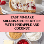 Millionaire Pie is a creamy, no-bake dessert featuring a crunchy graham cracker crust filled with a tropical mixture of sweetened coconut, crushed pineapple, maraschino cherries, pecans, and whipped topping. This chilled pie combines refreshing citrus notes with rich sweetness, making it a perfect treat for gatherings and warm weather.