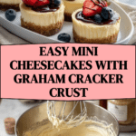 These Mini Cheesecakes are delightful individual desserts featuring a crunchy graham cracker crust and a creamy, smooth cheesecake filling. Perfectly portioned and topped with fresh berries, chocolate or caramel drizzle, and whipped cream, these mini treats are ideal for any occasion and easy to make at home.