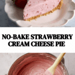 This No-Bake Strawberry Cream Cheese Pie is a luscious and refreshing dessert featuring a buttery graham cracker crust filled with a creamy, sweet strawberry cream cheese mixture. With the natural sweetness of fresh strawberries pureed and folded into a smooth cream cheese filling set with gelatin, this pie is perfect for warm days or when you want a delicious dessert without turning on the oven.
