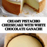 This incredible Pistachio Cheesecake takes traditional cheesecake to another level by incorporating rich pistachio flavors into a creamy, smooth filling paired with a crunchy pistachio cookie crust. Topped with a luscious whipped white chocolate ganache and decorated with chopped pistachios, this dessert offers a perfect balance of earthy, nutty, and sweet flavors. Ideal for special occasions or an elegant dessert, it combines a buttery cookie base, a velvety pistachio cream cheese layer, and a light, airy ganache topping.