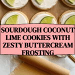 These Sourdough Coconut Lime Cookies perfectly combine the tangy depth of sourdough starter with tropical coconut and zesty lime flavors. Soft and buttery with a crisp edge, these cookies are topped with a refreshing lime buttercream frosting and garnished with thin lime slices, making them an irresistible treat for any occasion.