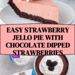 This easy no-bake Strawberry Jello Pie combines a creamy strawberry gelatin filling with a chocolate cookie crust, topped with luscious homemade chocolate-dipped strawberries. Perfect for a refreshing, crowd-pleasing dessert without the oven.