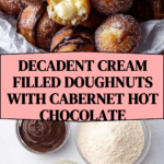 Indulge in these decadent Vanilla Cream Filled Cabernet Hot Chocolate Snowball Doughnuts, featuring soft, fluffy fried doughnuts filled with a luscious vanilla cream custard and served alongside a rich, velvety Cabernet-infused hot chocolate sauce. Perfect for an elegant dessert or a luxurious treat to impress guests.