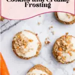 If you’re bringing these cookies to a gathering, stack them on a pretty plate or tiered stand. Wrap them individually in parchment paper tied with twine for an adorable gift, or sandwich the frosting between two cookie layers for a cute twist on the classic carrot cake experience.