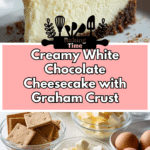 This creamy white chocolate cheesecake features a buttery graham cracker crust and a luscious filling made with real white chocolate, cream cheese, and sour cream. Baked in a water bath for a smooth, velvety texture and chilled overnight, it makes for an elegant and indulgent dessert perfect for special occasions or anytime you crave a rich, sweet treat.