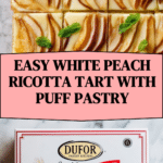 This White Peach Lemon-Ricotta Tart is a delightful blend of creamy ricotta, bright lemon flavors, and sweet sliced white peaches atop a flaky puff pastry crust. This elegant dessert is perfect for warm weather gatherings or any occasion that calls for a light and refreshing treat. With simple ingredients and straightforward steps, it combines the tartness of lemon with the natural sweetness of peaches to create a vibrant, delicious tart that’s sure to impress.